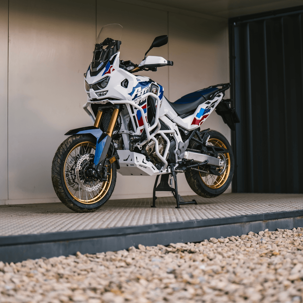 Gmole Honda Africa Twin Adventure Sports zostały zaprojektowane, aby chronić motocykl w najtrudniejszych warunkach. Główną częścią są rury o wymiarach 27x2mm, zaprojektowane do wytrzymywania dużych obciążeń. Baza gmoli ma 5 punktów podparcia po każdej stronie, co zapewnia maksymalne wsparcie konstrukcji z optymalnym rozkładem sił na wszystkie punkty. Całość została zespawana metodą TIG. Stworzyliśmy projekt jak najbardziej kompaktowy, aby zmniejszyć opór powietrza podczas jazdy. Do demontażu gmoli do serwisowania potrzebne jest odkręcenie tylko 6-7 śrub. Projektowanie miejsc umożliwia szybki demontaż.