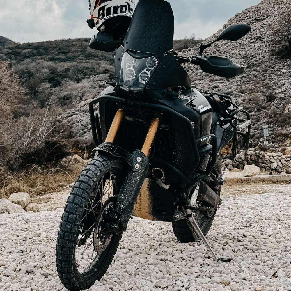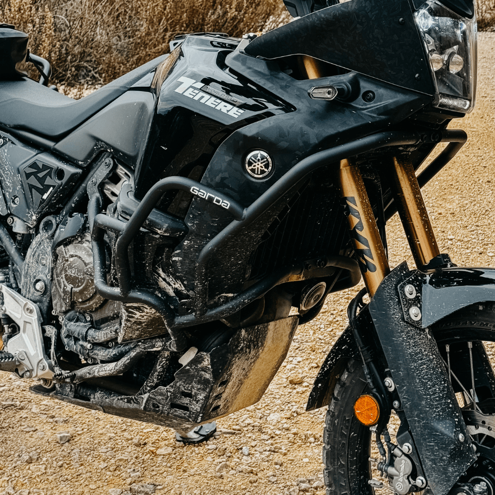 GARDA MAX to gmole do Yamaha Tenere World Raid. Zaprojektowane są one w celu ochrony motocykla w najtrudniejszych warunkach. Główną część stanowi rura o średnicy 25x2 mm, zaprojektowana do wytrzymywania dużych obciążeń. Podstawą gmoli są 4 punkty podparcia po każdej stronie, co zapewnia maksymalne wsparcie konstrukcji oraz optymalne rozłożenie sił na wszystkie punkty. Całość została spawana metodą TIG. Starałyśmy się zaprojektować konstrukcję tak kompaktową, jak to możliwe, aby zmniejszyć opór powietrza podczas jazdy oraz redukcję wagi struktury.